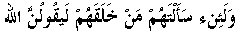 These verses mean: [If you ask them, ‘Who created the heavens and earth?’ They will say, ‘Allah’.]