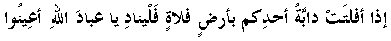 which means: << If one of you lost something or needs help while in an open land, then let him say: "O slaves of Allah, help me.">> Another narration says: