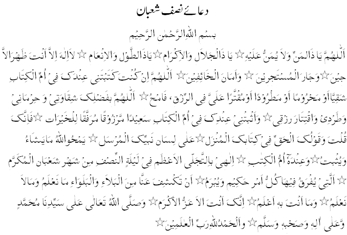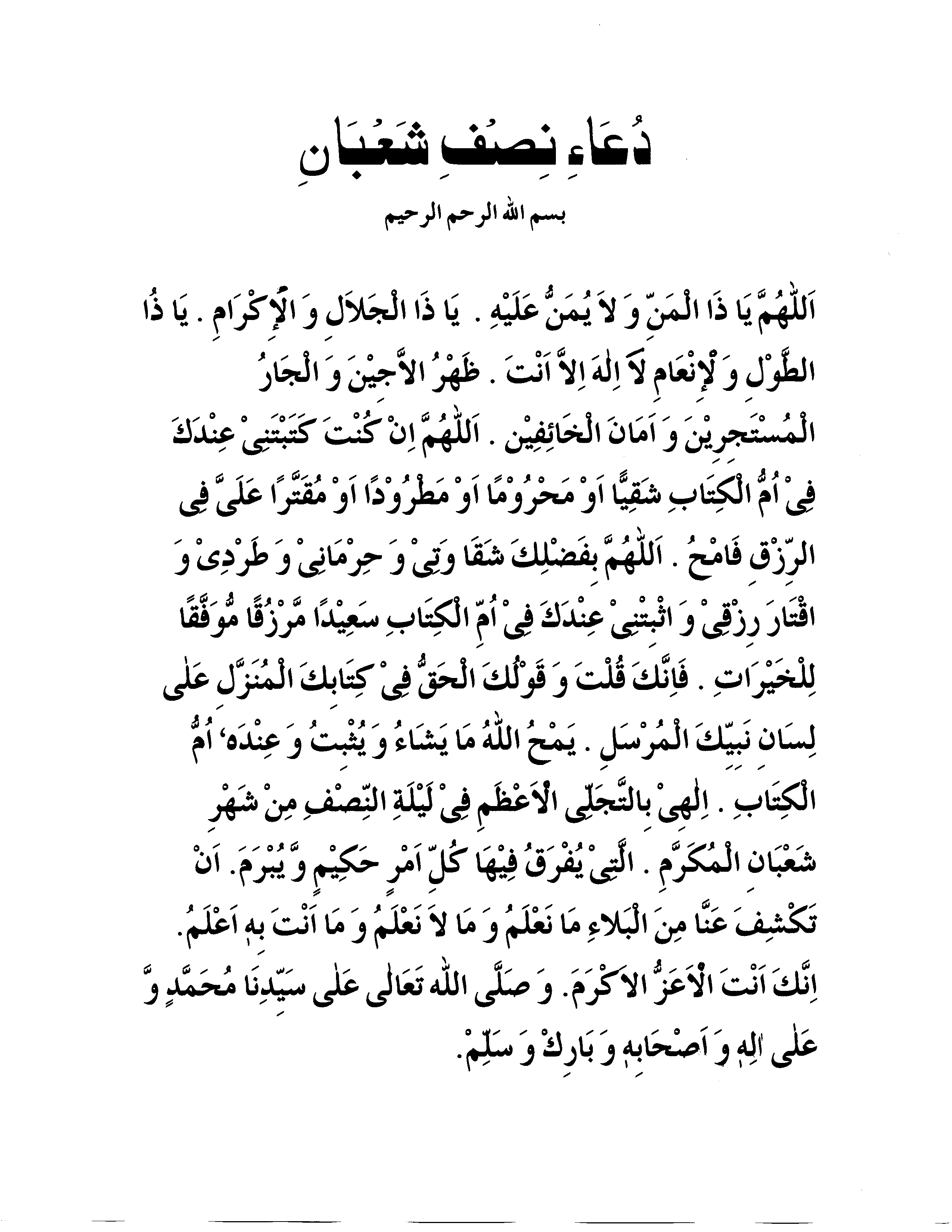 “Allaah (Exalted is He) surveys His creatures on the night of mid-Sha’baan, and when He purifies someone then, He keeps that person clean until the next such night comes around.”According to ‘Ataa’ ibn Yasaar: “The activity of the year is mapped out on the night of mid-Sha’baan, so a man may embark on a journey, or get married, when he has already been transferred from the list of the living to that of the dead.”Abuu Nasr informed me that Hazrat ‘A’isha (Radhiyallahu anhaa) once said: “I heard the Nabi (Sall Allahu alaihi wa Aalihi wa Sallim) say: Allaah showers down benefits on four nights: the Night of Sacrifice; the Night of Breakfast; the Night of mid-Sha’baan, when Allaah records times of death and allots provisions, and lists the pilgrims; and the Night of ‘Arafa till the call to prayer.According to Sa’iid, it was Ibraahiim ibn Abii Najiih who said: “[The number of those nights is] five, including the Night of Friday Congregation.” Hazrat Abuu Huraira (Radhiyallahu anhu) reported the Holy Nabi (Sall Allahu alaihi wa Aalihi wa Sallim) as saying: Gabriel (Alayhis-Salaam) came to me on the night of mid-Sha’baan and said to me: “O Muhammad, raise your head heavenwards!” I asked him: “What night is this?” and he replied: “This is the night when Allaah (Glorified is He) opens three hundred of the gates of mercy, forgiving all who do not make anything His partner. The only exceptions are those who practice sorcery or divination, are addicted to wine, or persist in usury and illicit sex; these He does not forgive until they repent.”On why the Night of Absolution [Lailat al-Baraa’a] is so called. Some say it is called the Night of Absolution [Lailat al-Baraa’a] because it contains two absolutions: an absolution for wretched sinners from the All-Merciful, and an absolution from disappointment for the Friends [of Allaah]. Allaah’s Messenger (Sall Allahu alaihi wa Aalihi wa Sallim) is reported as having said: When the night of mid-Sha’baan arrives, Allaah makes careful scrutiny of His creatures, then He forgives the true believers, gives respite to the unbelievers, and leaves the resentful to their resentment until they call for Him.It is said that the angels have two Nights of Festival in heaven, just as the Muslims have two Days of Festival on earth. The angels celebrate the Night of Absolution and the Night of Power, while the Muslims celebrate the Day of Breakfast and the Day of Sacrifice. The angels have their festivals at night, because they never sleep, while the believers have theirs by day because they do sleep. Concerning the wisdom in the decision of Allaah (Exalted is He) to make known [the date of] the Night of Absolution, while concealing [that of] the Night of Power, it has been said to lie in the fact that the Night of Power is the night of mercy and forgiveness and emancipation from the fires of Hell, which Allaah (Almighty and Glorious is He) has kept hidden so that there can be no discussion about it. He has made known the Night of Absolution, however, because it is the night of regulation and decree, the night of displeasure and approval, the night of acceptance and rejection, of attainment and obstruction, the night of bliss and woe, of grace and cleansing. Thus one is favored while another is put off; one is requited while another is abased; one is treated generously while another is deprived; one is rewarded while another is shunned. Many a shroud is washed, while its owner is still busy in the bazaar. Many a grave is dug, while its owner is deluded with pleasure. Many a mouth is laughing, though it will soon be perishing. Many a house is under construction for an owner close to destruction. Many a servant expects a reward, while punishment awaits him. Many a servant hopes for good news, while disappointment lies in store. Many a servant looks forward to Paradise, while the fires of Hell are ready for him. Many a servant hopes for union, while separation lies ahead. Many a servant hopes for a gift, while agony awaits him. Many a servant is expecting wealth, while death is expecting him. It is said of Hazrat al-Hasan al-Basrii (Radhiyallahu anhu) that he came out of his house on the day of mid-Sha’baan, looking as if he had been buried in the grave and then disinterred. When asked about this, he said: “By Allaah, what is the plight of a shipwrecked sailor, when compared to my own?” “Why is that?” “Because I am certain of my sins, but I tremble over my good deeds, for I know not whether they will be accepted of me or rejected.” Concerning the Prayer of Benefits [Salaat al-Khair], traditionally performed on the night of mid-Sha’baan. As for the ritual prayer traditional for the night of mid-Sha’baan, it consists of one hundred Rak'at, including one thousand repetitions of “Qul Huwa’llaahu Ahad [Say: ‘He is Allaah, Ahad!’]” (that is to say, ten recitations in each cycle [rak’a]). This prayer is called Salaat al-Khair [the Prayer of Benefits], and its blessings are many and varied. Our righteous predecessors used to gather to perform it in congregation. It contains much merit and rich reward. It is reported of al-Hasan [al-Basrii] (may Allaah bestow His mercy upon him) that he once said: “Thirty of the Companions of Allaah’s Messenger (Sall Allahu alaihi wa Aalihi wa Sallim) related to me that Allaah will look seventy times upon one who performs this prayer on this night, and with each glance He will fulfill seventy of that person’s needs, the least of them being forgiveness.”It is also commendable to perform this prayer on the fourteen nights on which vigil is recommended, as we mentioned in [the chapter concerning] the merits of Rajab, so that the worshiper may thereby obtain this grace, this merit and reward. This brings us to the end of the Sixth Discourse. Praise be to Allaah, the Lord of All the Worlds! [al-hamdu li’llaahi Rabbi ‘l-‘aalamiin]. Courtesy of Brother Ruslan Moo